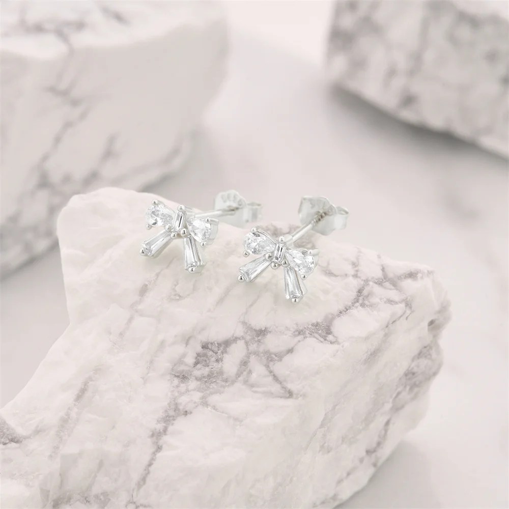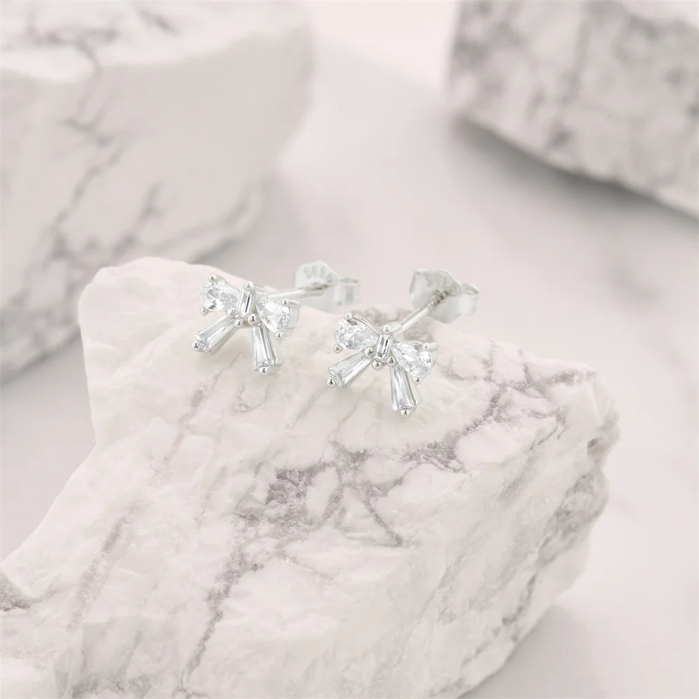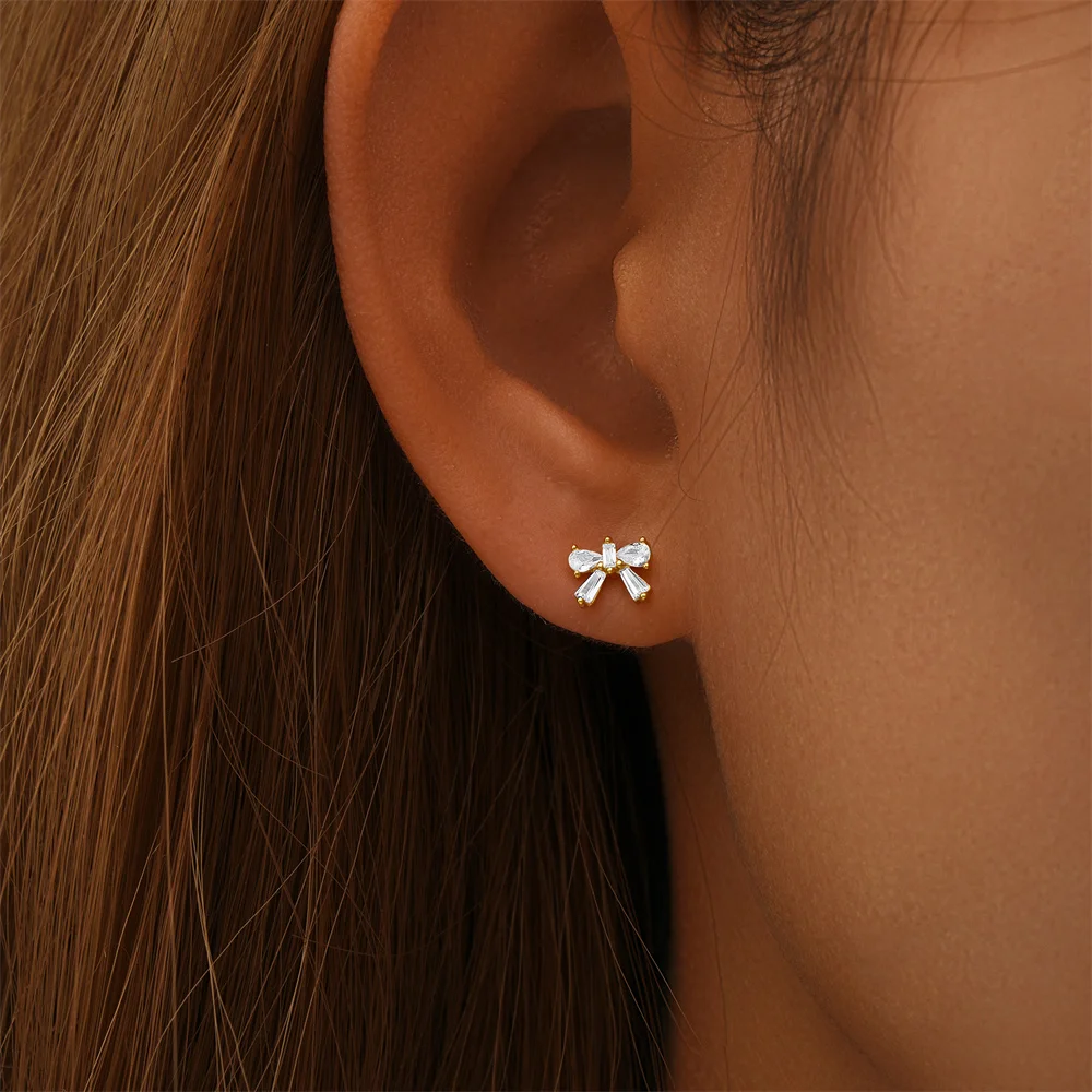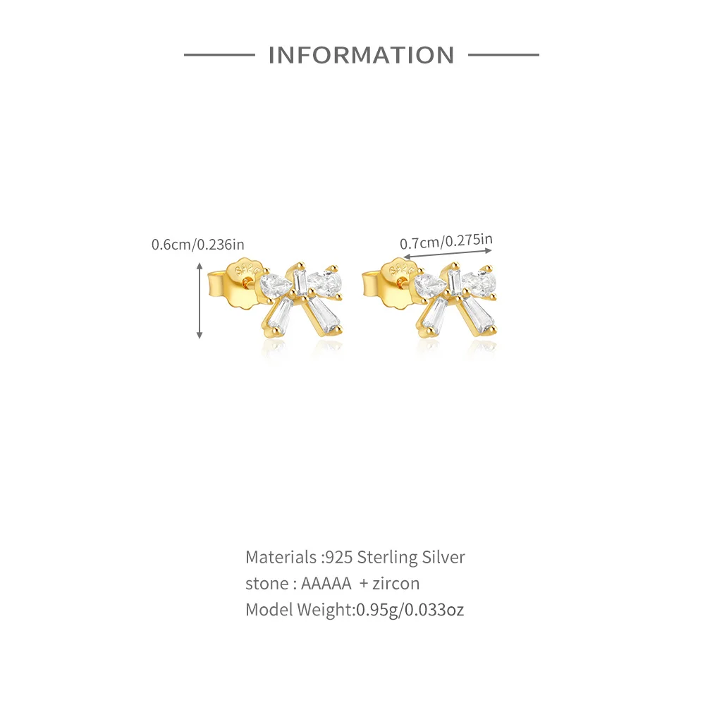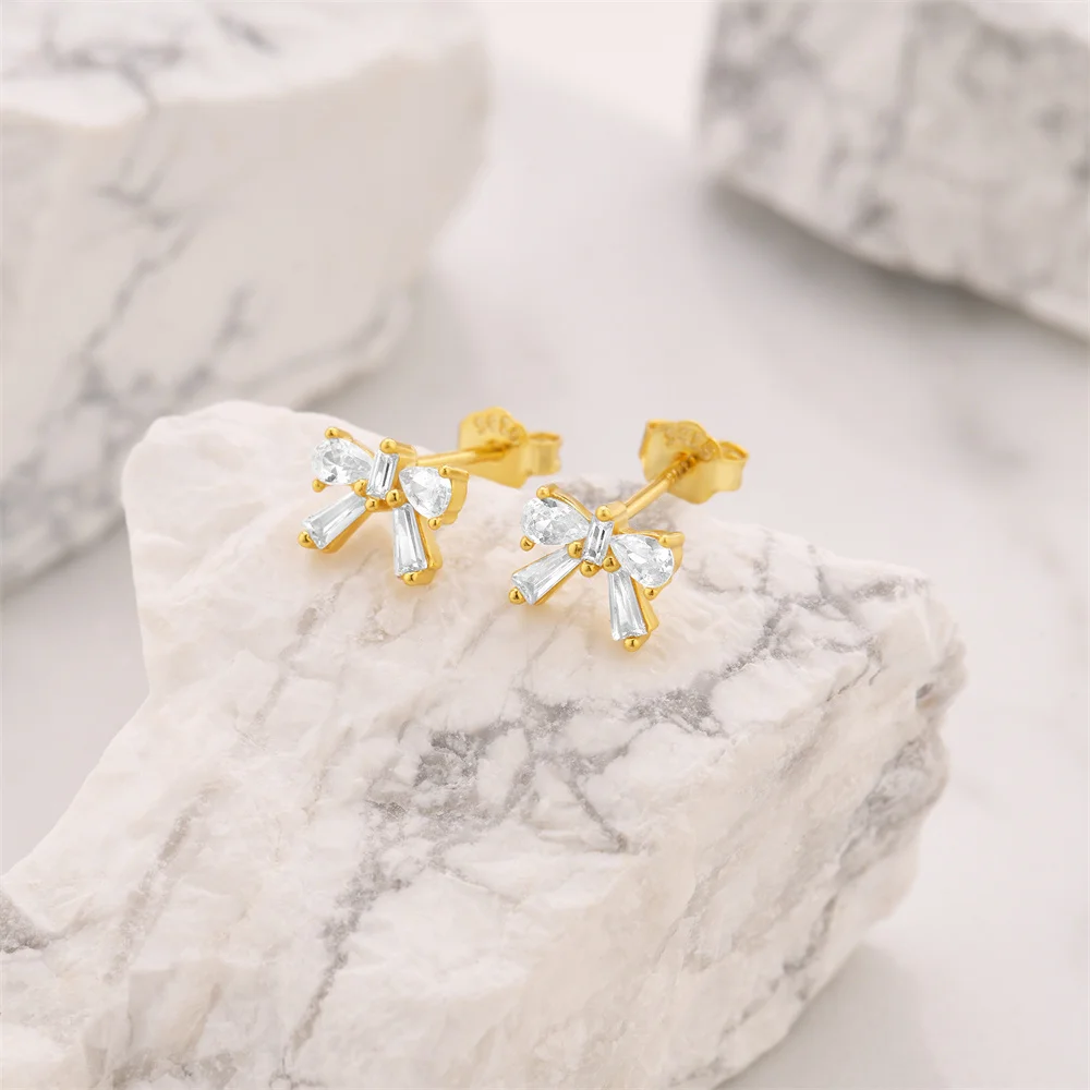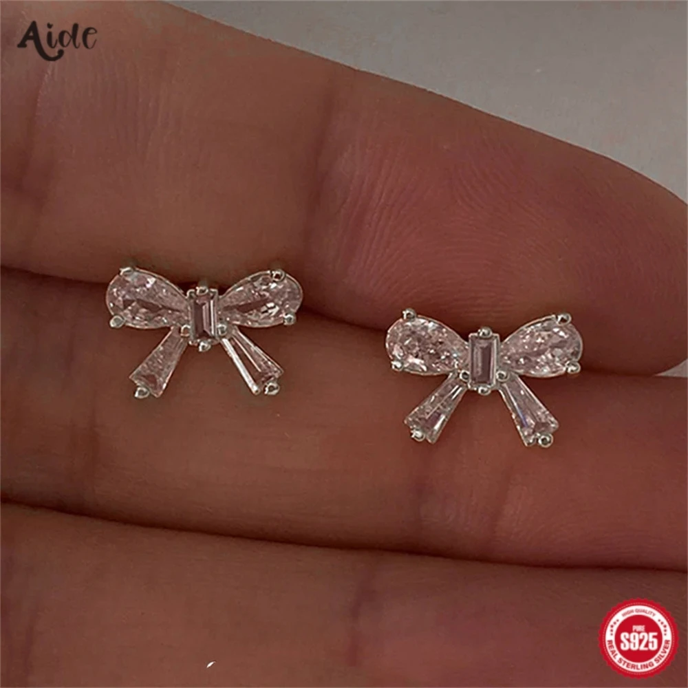Aide 925 Sterling Silver Sweet Bow Mariquesa Zircon Piercing Stud Earrings For Women K Gold Elegant Bohemian Jewelry Party Gift